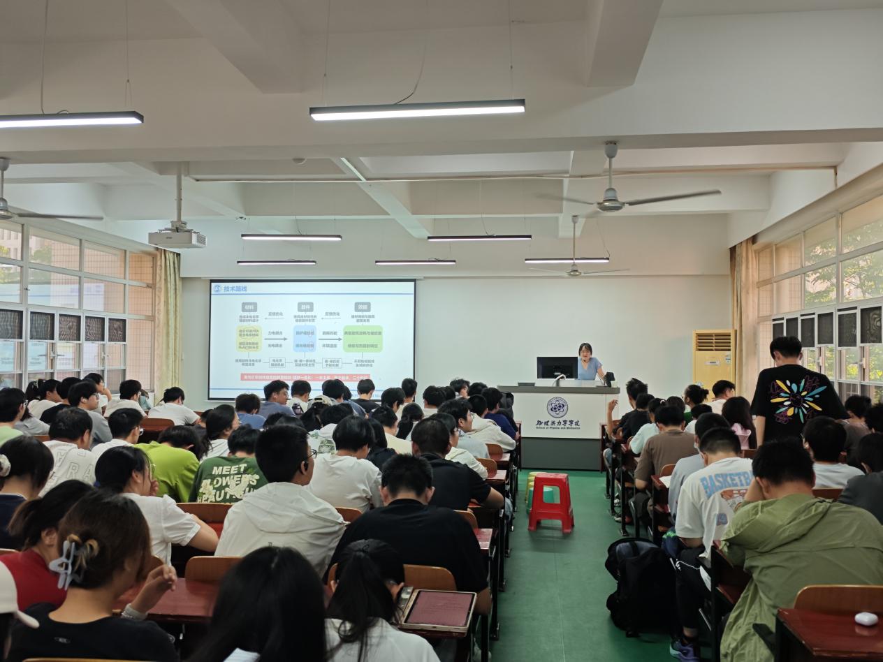 在介绍电化学储能器件时,罗雯教授详细讲解了其工作原理、分类以及在能源存储领域的重要地位。她通过生动的案例和形象的比喻,将复杂的科学原理讲解得通俗易懂,让在场的学生们对电化学储能器件有了更直观、更深入的认识。同时,她还结合国家能源战略需求,阐述了电化学储能技术在可再生能源并网、智能电网建设、电动汽车等领域的重要应用前景,让学生们深刻认识到自己所学的专业知识和研究成果与国家发展战略紧密相连。