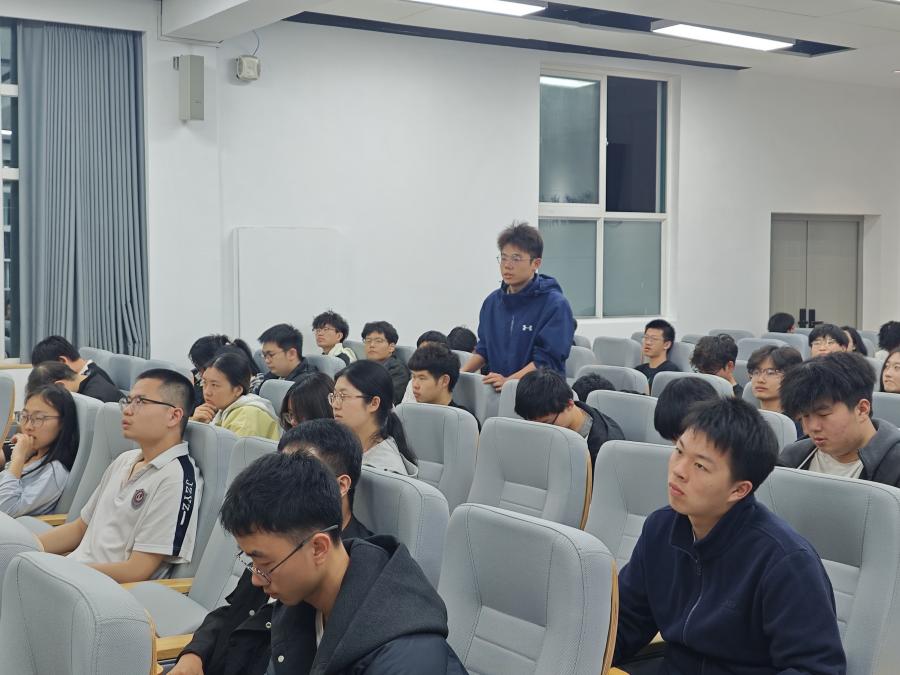 问答环节中,邓博士耐心解答了同学们关于专业学习、科研入门、升学就业等方面的疑问,结合自身求学与工作经历给出了切实可行的建议,重点强调了两点对个人成长至关重要的内容:一是在学习和科研道路上,要找到自己真正感兴趣的方向,唯有热爱才能支撑长期深耕;二是个人发展离不开良好的平台与自身能力的双向赋能,二者相辅相成、缺一不可。