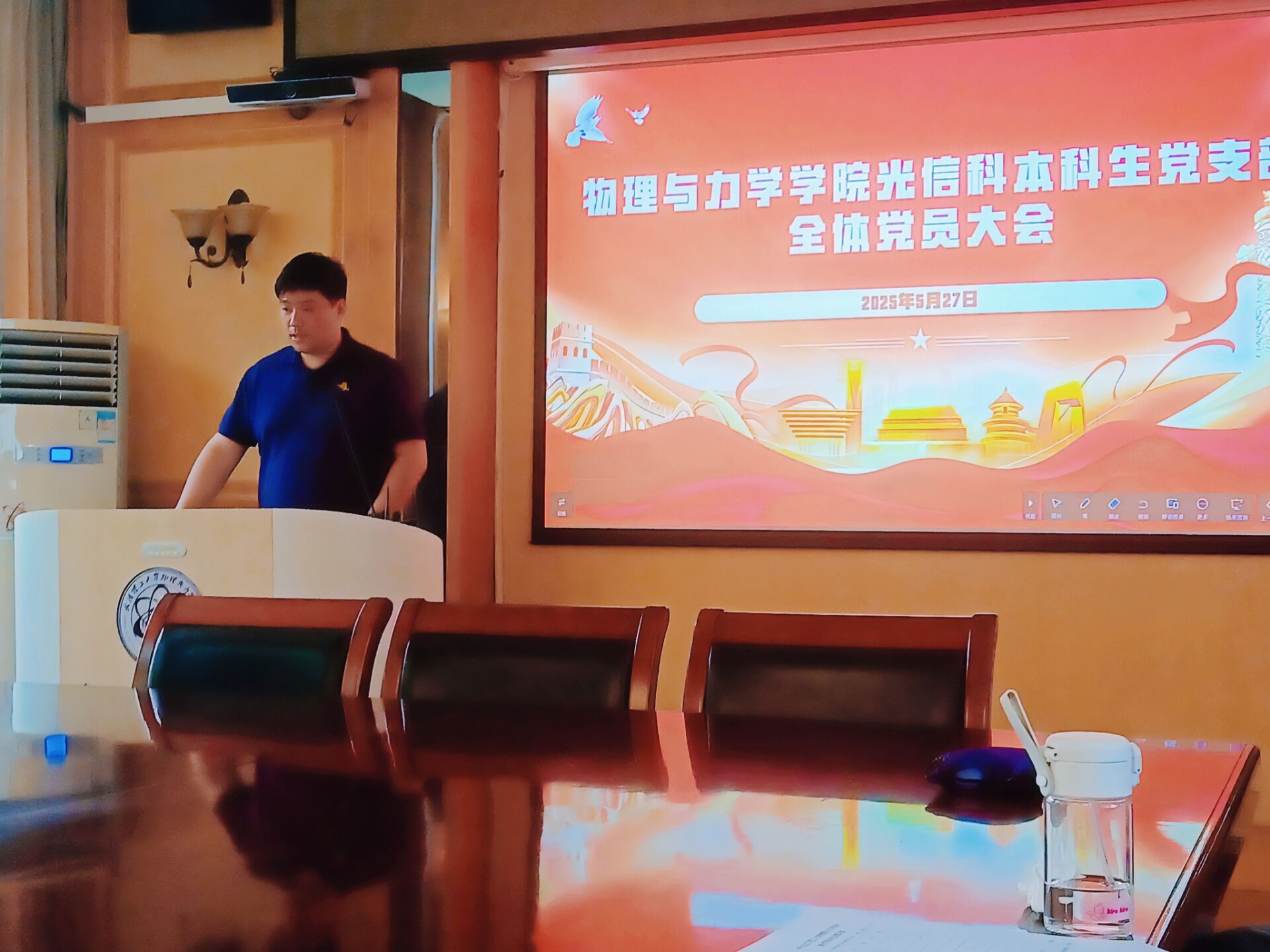 光信科本科党支部在理办楼304会议室举行接收预备党员大会,本次活动由党支部书记程磊主持。